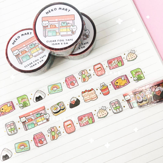 Neko Mart SUPER Bundle - 4 Enamel Pins + Clear Foil Tape