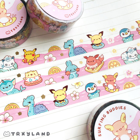 Surfing Buddies Series SUPER Bundle - 3 Enamel Pins + Clear Foil Washi
